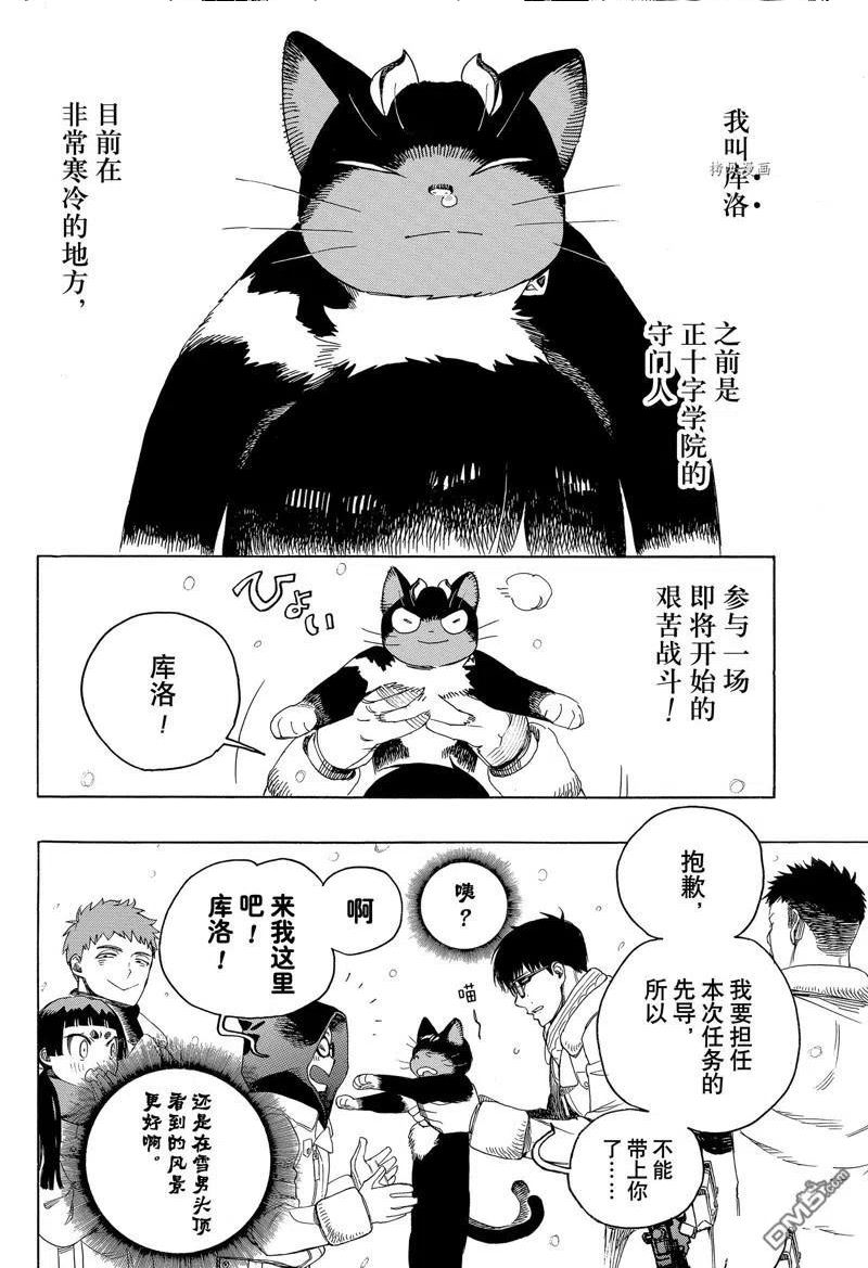 主人公奥村燐,是在正十字学园上学的学生,虽说表面上是炎的后代但是实际上是魔神撒旦的儿子,只能用降魔剣抑制这力量,藤本被撒旦杀死后,就敲开正十字骑士団的大门,立志成为除魔师,他的目标是—揍撒旦一顿……于2009年5月号始连载于《JumpSquare》(简称JumpSQ、日语:ジャンプスクエア)