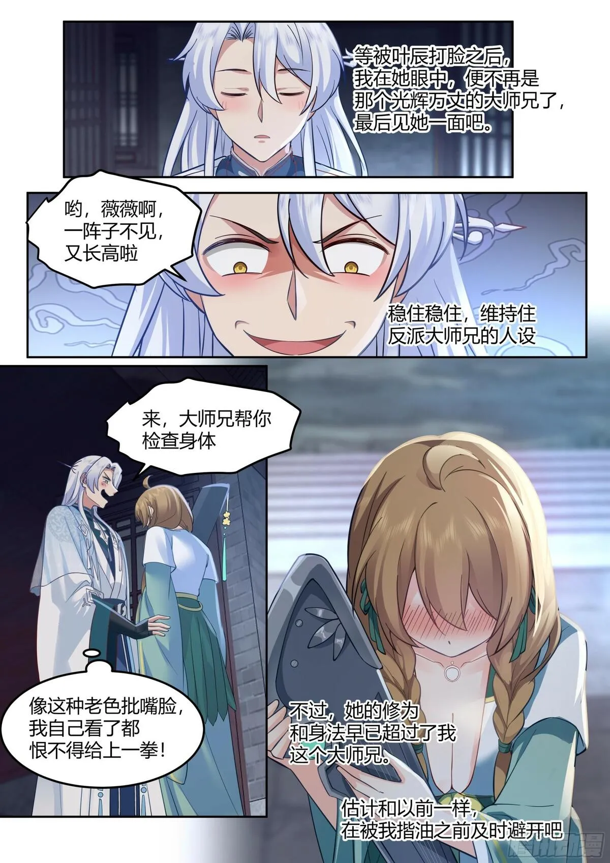 反派大师兄,师妹们全是病娇又名,类型为古风|穿越的高人气漫画,漫画简介:林萧穿越后成了青岚宗的反派大师兄!只要按照原著剧情走,当个恶心人的反派,便能成仙飞升!无奈之下,只能没事戏弄下四师妹,偷一手三师妹的衣物,往二师妹水里下点猛药,兢兢业业履行反派职责。终于熬到男主叶辰拜...