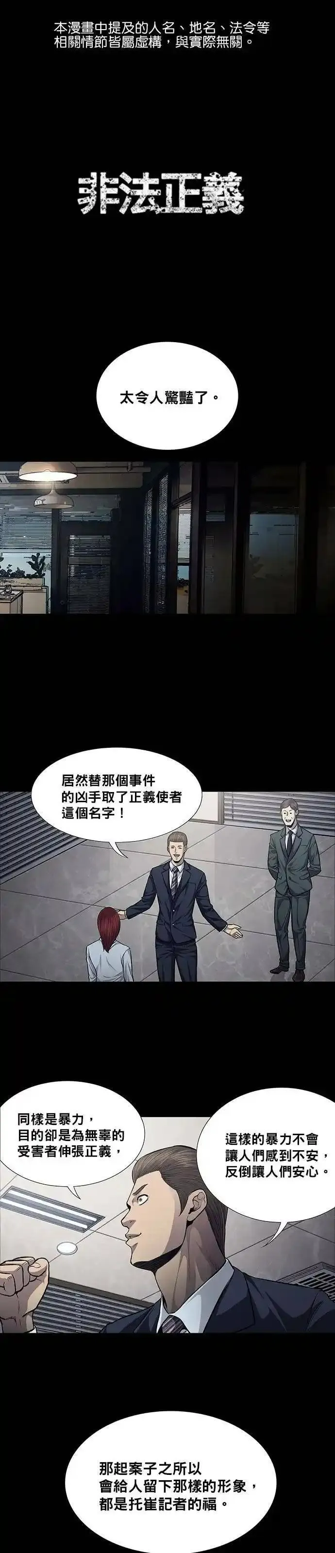 非法正义又名,类型为悬疑推理的高人气漫画,漫画简介:《虫穴》作家新作登场!法律存在着漏洞,我要去填补那些漏洞。要怪就怪法律把你放了出来!