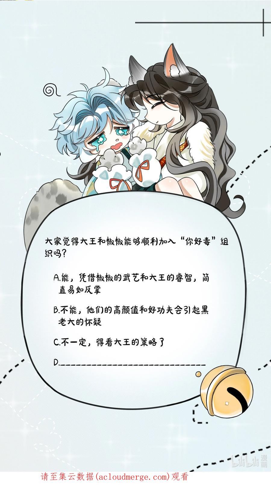CP:白切黑雪狼王X傻白甜雪豹雪豹美人一紧张就是喜欢咬尾巴,当他被送到雪狼王的寝室时,他也是瑟瑟发抖地咬着尾巴的雪狼王:你怕什么?我又不会吃了你。雪豹:我怕你XX我的OO。雪狼王:那真是失礼了,本王正是为此而来的。——雪豹:听说只有雪狼才可以当王后……?雪狼王:有这个规定吗?我去问问生物学家——三天之后,北国的生物学家表示:雪豹是雪狼的一种———架空背景的跨物种妖怪的爱情故事。